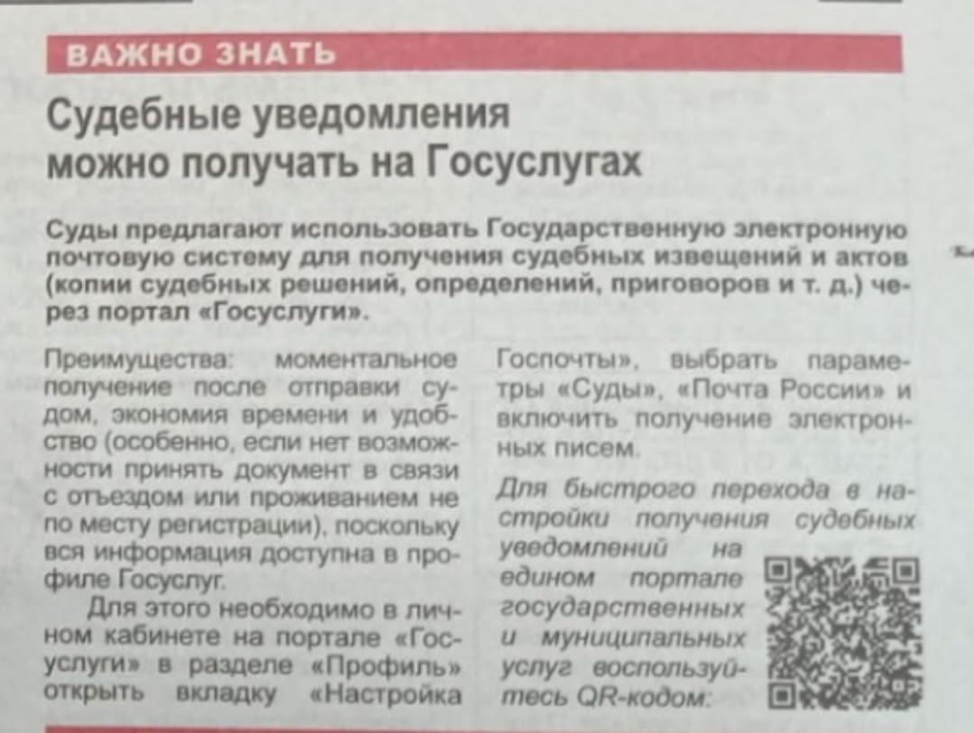 "Судебные уведомления можно получать на Госуслугах"